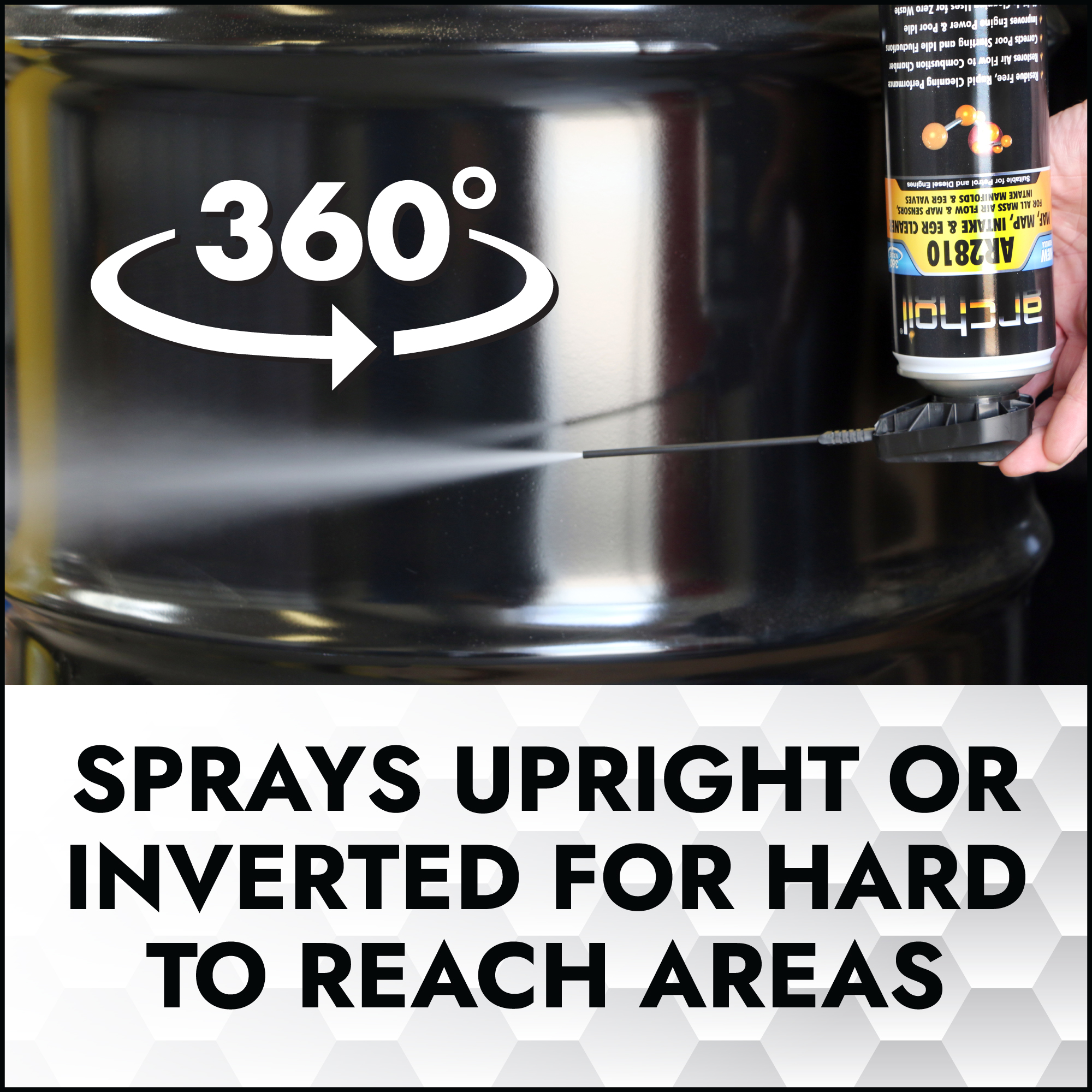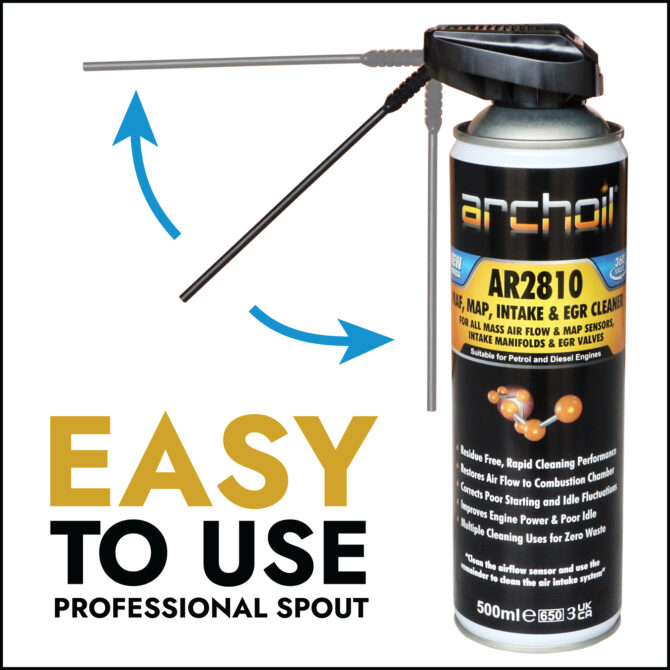 AR2810 will also clean air intake manifolds and associated components such as EGR valves. Zero waste approach – clean the MAF sensor and use the remainder to clean the air intake system.