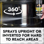 • The revolutionary flip spray cap delivers a controlled flow of product, and the inverted valve ensures the contents can be sprayed whilst the can is inverted, for difficult to reach areas.